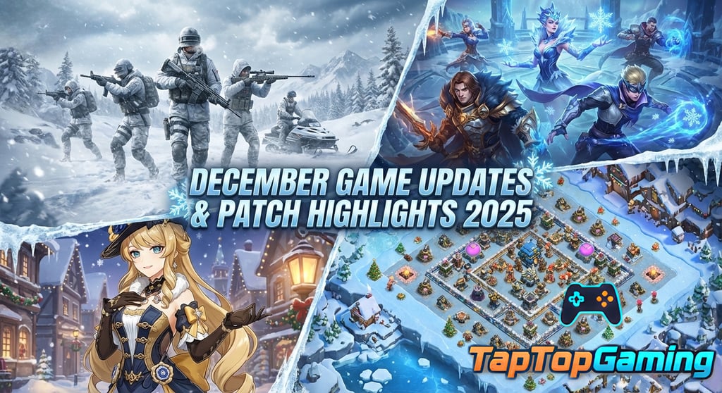 Discover the biggest December game updates and patch highlights across PUBG, CODM, MLBB, Genshin Impact, and Supercell titles. See what’s new, what’s fixed, and what’s coming next.
